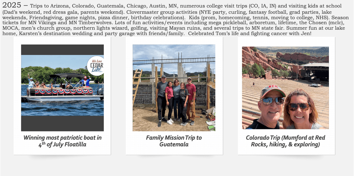 This is just a glimpse...three photos per year with a short summary to highlight some of the memories.