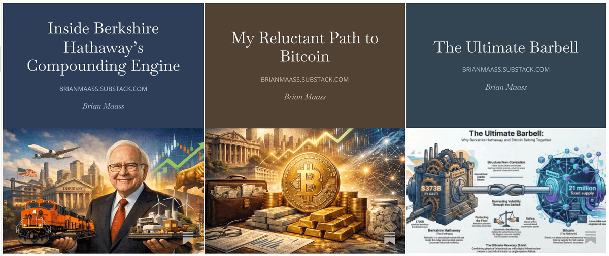 Berkshire Hathaway and Bitcoin form the ultimate barbell portfolio because they are fundamentally uncorrelated opposites that together cover every dimension of wealth creation and preservation. Berkshire is the world's greatest cash flow engine, anchored by insurance float, irreplaceable industrial franchises, and a war chest ready to deploy when markets panic. Bitcoin is its perfect counterweight: decentralized, mathematically scarce, and immune to the monetary debasement that erodes everything Berkshire earns. When their prices diverge, a disciplined investor can rebalance between them, harvesting volatility as a compounding mechanism rather than treating it as a risk to be feared. The Fortress protects against market risk; the Network protects against systemic risk. Together, they offer something no traditional portfolio can: the simultaneous power to make wealth and keep it.