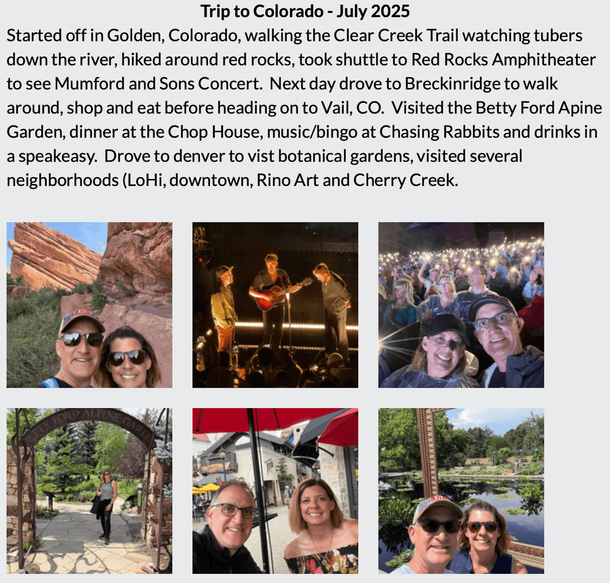 What I’ve learned is that we tend to remember not the routine, but the shared experiences which are the meaningful moments with family, friends, and occasionally even from work. It’s not just the big things like adventures, concerts, trips and milestone events but also the quiet ones: our kids’ activities, moments of growth, faith journeys, and the values we live by. These are the real highlights.